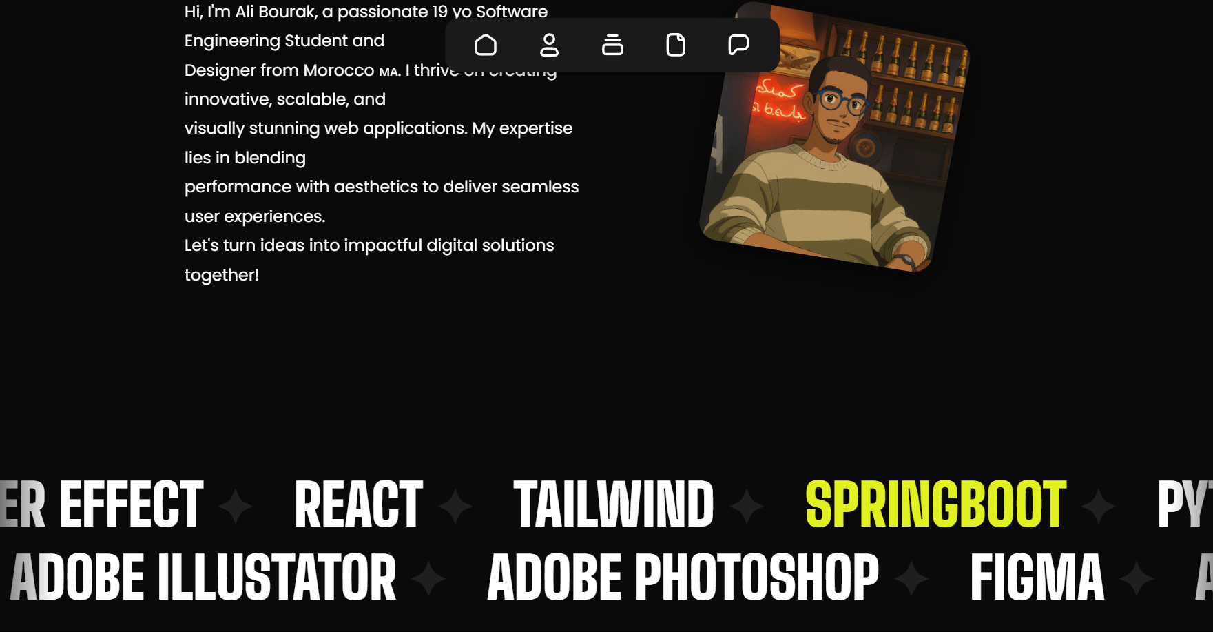 My personal portfolio website showcases my work and skills as a developer, built using a modern tech stack including TypeScript, Next.js, and Tailwind CSS. This featured project demonstrates my proficiency in both frontend and backend development while serving as a comprehensive digital resume.