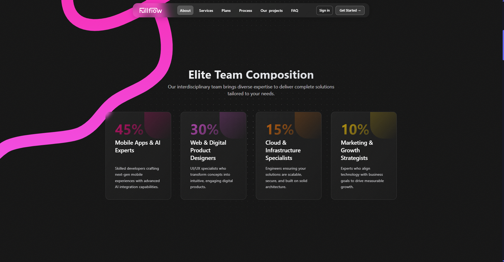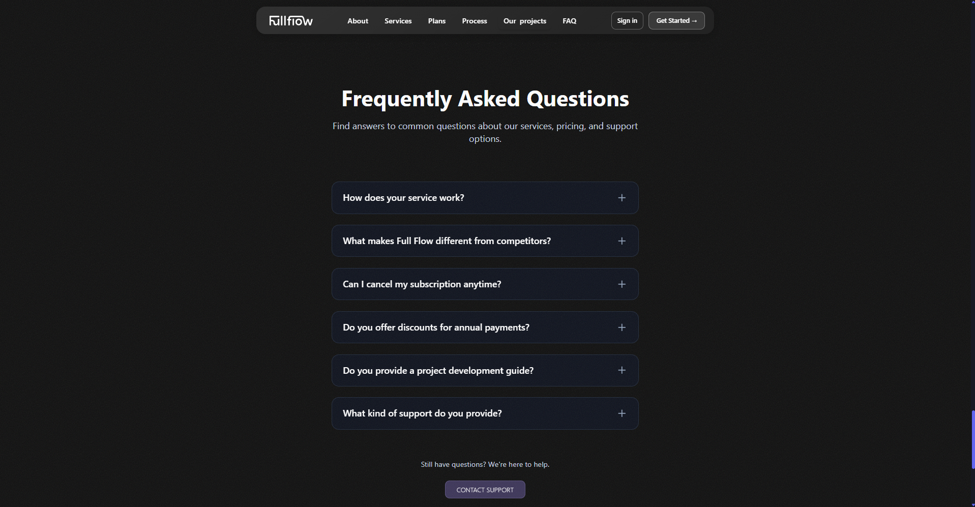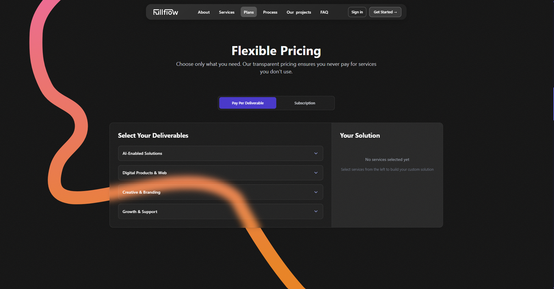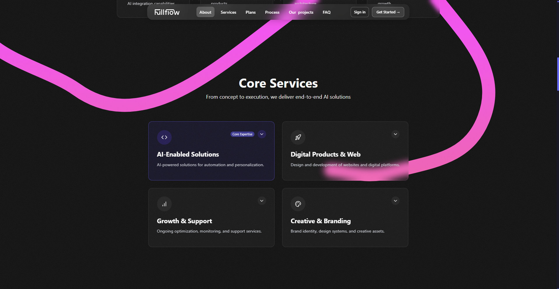 fullflow delivers AI-powered solutions for modern workflows along with services across Digital Products & Web, Growth & Support, and Creative & Branding. The platform is built using Next.js, Tailwind CSS, and GSAP, with integrated PayPal payments and SendGrid for transactional and marketing emails.